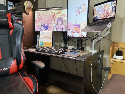 もくじ もくじ はじめに 機材紹介!! 全体像 パソコン 椅子 ディスプレイ×2 モニターアーム キーボード トラックパッド デスクライト USBドッキングステーション モニター台 配線 カメラ スピーカー 下に敷いているマット 空いてるスペースに置くもの りゅ…